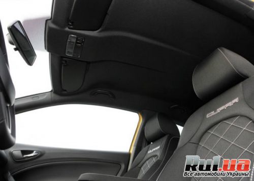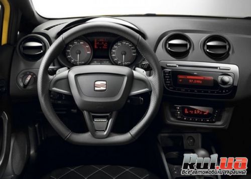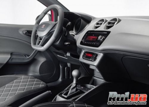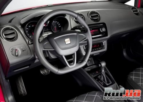 Внутри Seat Ibiza SC Cupra все так же выполнено в спортивном стиле. Речь идет о блестящих "рояльного цвета" элементах передней панели и приплюснутом рулевом колесе, которое регулируется по вылету и по высоте. Спортивные сидения с развитыми боковыми зацепами выполнены в особом стиле, наводящем на мысли о классических спортивных машинах семидесятых.